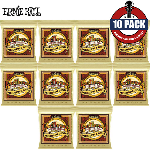 10-PACK Ernie Ball 2003 Earthwood 80/20 Bronze Acoustic Guitar String Med-Light 12-54
