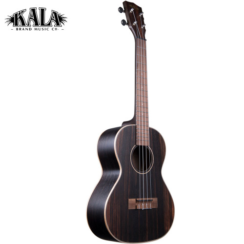 The Ebony line has a deep brown body with reddish-brown striping, finished in satin for a natural look. The light colored Maple rosette and binding creates a nice contrast to the Ebony body.