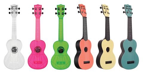Stepping up to a walnut fretboard and bridge, The Makala Shark and Makala Dolphin give you plenty of value with an even wider selection of colors and styles. While they can’t go for a swim, the thick finish on both models allow for them to be routinely disinfected and wiped down. Give your students a clean and colorful experience with their very first wooden instrument! Tested for ages 3+